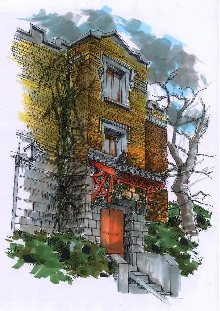 他懷著對(duì)母校的熱愛,手繪了校園建筑