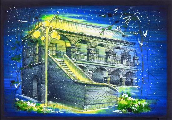 有彩色的付出就有金色的回報(bào)。手繪畫作如此受歡迎,邢年轉(zhuǎn)很受激勵(lì),也由此發(fā)現(xiàn)了潛在商機(jī)。2017年,邢年轉(zhuǎn)和幾個(gè)同學(xué)創(chuàng)辦了公司,邢年轉(zhuǎn)作為美術(shù)總監(jiān),負(fù)責(zé)創(chuàng)作,試推廣的手繪開封的作品也有兩百套。今年,他又參加了尉氏縣規(guī)劃館的籌備,手繪尉氏縣興國(guó)寺塔、劉青霞故居紀(jì)念館、老城門和阮籍嘯臺(tái)的復(fù)原圖。