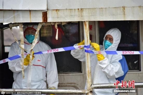 2015年6月8日,湖北荊州,工作人員對“東方之星”輪逐層逐艙進行最后的排查清理。14時10分,驗收通過后長江公安警方拉上了警戒線,這標志著“東方之星”輪現(xiàn)場排查清理工作全部完成。圖片來源:CFP視覺中國