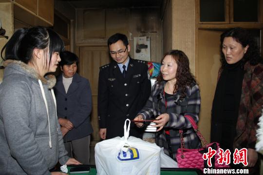圖為浙江臺(tái)州椒江警方于28日到李某親屬家中探望正處于康復(fù)期的“帶毒”小嬰兒,并送上愛(ài)心捐款和奶粉等慰問(wèn)品。