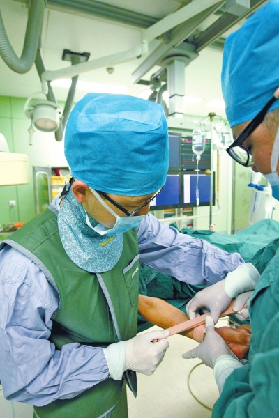 “護(hù)士先生”在為病人包扎手術(shù)后的傷口