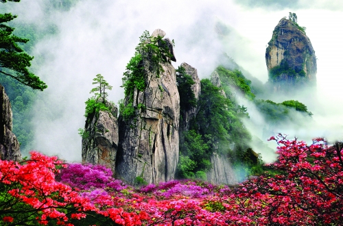 堯山俊俏的山峰、秀美的瀑布、奇異的迎客松、動(dòng)植物等資源一直深深吸引著廣大游客,特別是春季,堯山山花次第開(kāi)放,踏青拜佛泡溫泉,在游客中掀起了去堯山旅游的大潮。筆者從堯山景區(qū)了解,堯山杜鵑節(jié)已于4月20日拉開(kāi)帷幕,今年的杜鵑特別繁茂、艷麗,目前,山門(mén)至迎鳳樹(shù)附近的杜鵑已全部開(kāi)放,叢叢紅、粉杜鵑綻放在懸崖上,飽含著堯山的熱情奔放,掩映于叢林中,蘊(yùn)藏著堯山的含蓄與嬌羞?!?/p>