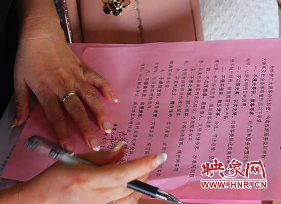 宣誓完后,參加宣誓的各鄉(xiāng)鎮(zhèn)、各有關(guān)委局、旅游景區(qū)、星級(jí)酒店、景區(qū)商戶、旅行社以及農(nóng)家賓館業(yè)主紛紛簽訂了《欒川旅游服務(wù)“八不”承諾書》。承諾內(nèi)容包括:不漫天要價(jià),欺客宰客;不以假充真,以次充好;不強(qiáng)買強(qiáng)賣,欺壓游客;不態(tài)度粗暴,惡語(yǔ)傷人;不厚此薄彼,因人而異;不見利忘義,擅自違約;不虛假宣傳,誤導(dǎo)消費(fèi);不推諉扯皮,怠慢游客。