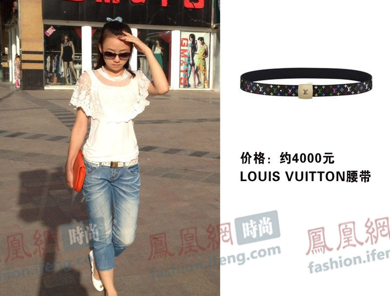 帆布質料的LV腰帶。姑娘,拜托把頭上的頭花拿下來吧,土??!