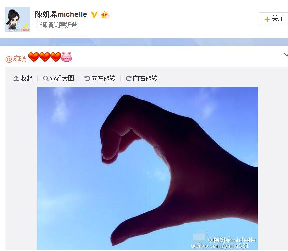 今日,陳曉終于發(fā)微博承認(rèn)了與陳妍希的戀情,稱:總有一天,你會跟我姓。用一張手比心照片作為配圖并艾特了陳妍希,隨后陳妍希也發(fā)微博艾特了陳曉同樣配圖用手比另一半心,兩個半心拼起來正好是一個完整的心。