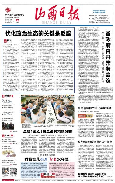 9月12日《山西日報》頭版