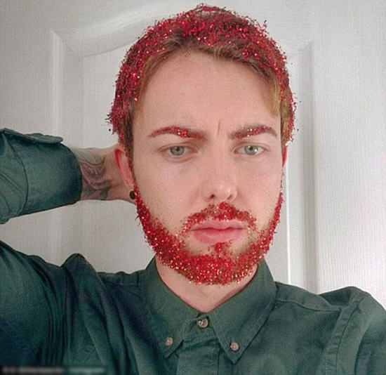 繼早前圣誕節(jié)閃亮腋毛席卷網絡后,網絡潮人又有新創(chuàng)作!據(jù)英國《每日郵報》3月23日報道,這次國外型男要裝扮的是他們的胡子——在胡子上撒滿熒光粉。