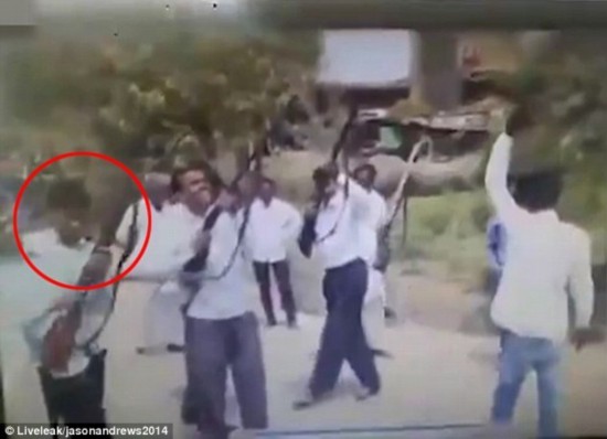 印度一對幸福新人26日于中央邦巴德納加爾舉行婚禮,賓客鳴槍慶祝時卻不慎誤射新郎父親,讓38歲的派特爾當(dāng)場倒地身亡。左一為鳴槍賓客,右一為受害者。