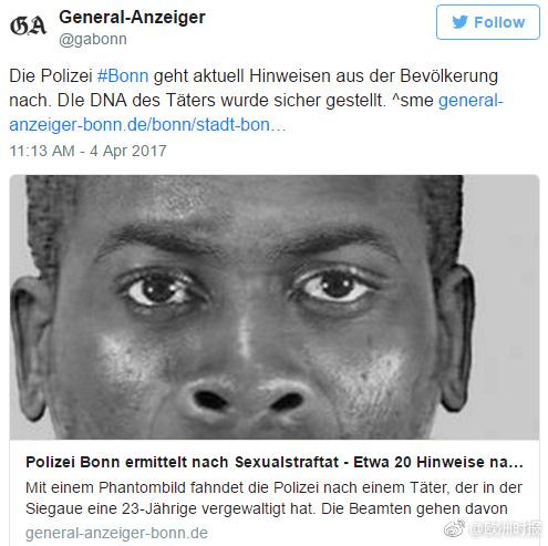 海外網(wǎng)4月4日電據(jù)歐洲時(shí)報(bào)援引德媒報(bào)道,周日(2日)凌晨,在波恩周邊露營的一對(duì)年輕情侶遭到“深色皮膚罪犯”持大彎刀威脅。案犯劃破帳篷強(qiáng)迫23歲女子到帳篷外,當(dāng)著她26歲男友的面將女子強(qiáng)奸。案犯還威脅26歲男友稱“如果敢報(bào)警就殺了他”。目前,警方正在通緝嫌犯,據(jù)估測嫌犯年齡在20到30歲,身高1.8米。