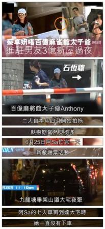 早前便有消息爆料稱,阿Sa(蔡卓妍)和“百億麻將館太子爺”石恒聰于今年4月開始戀愛。近日,另有媒體拍到阿Sa連續(xù)兩晚在男方家過夜,再添相戀證據(jù)。