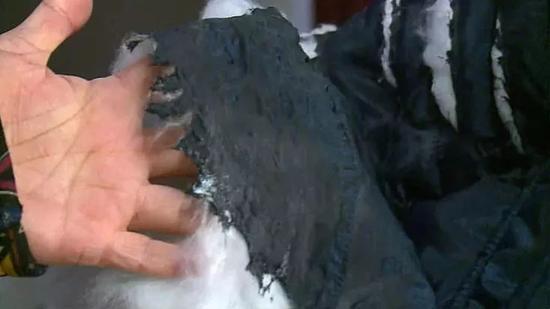 老人家告訴我們,一大早他和老伴收拾行李準備去鄉(xiāng)下,在廚房里拾掇的老伴身上羽絨衣突然爆炸,衣服背面出現(xiàn)了好幾個大窟窿,索性人沒有大礙。