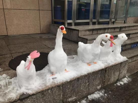 原標(biāo)題:下雪后,這位保安堆了個動物園!萌得心肝兒都化了…