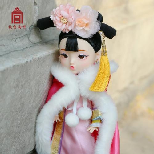 因此,故宮文創(chuàng)根據(jù)中國人的傳統(tǒng)五官印象,設(shè)計成此款烏發(fā)杏眼,寬額小嘴的中國娃娃。故宮文創(chuàng)方面表示,首次娃娃選擇了清代服飾,并在工藝允許的基礎(chǔ)上努力還原真實的清朝格格形象,之后還會陸續(xù)推出不同朝代的格格或公主服飾單品。