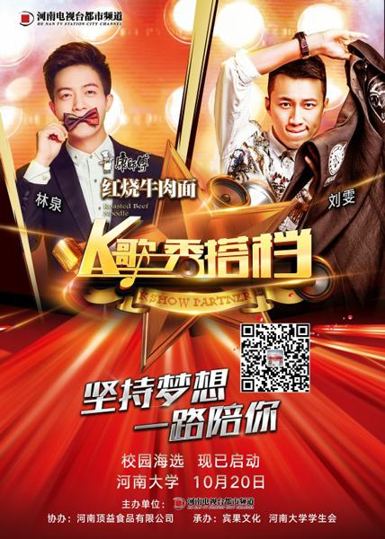 10月20日,由都市頻道和康師傅紅燒牛肉面聯(lián)合推出的《名嘴K歌秀》校園海選活動將在河南大學啟動并進行首場選拔,在接下來的兩個月時間里,該活動將走進省內(nèi)六大高校,尋找最會唱歌的你。