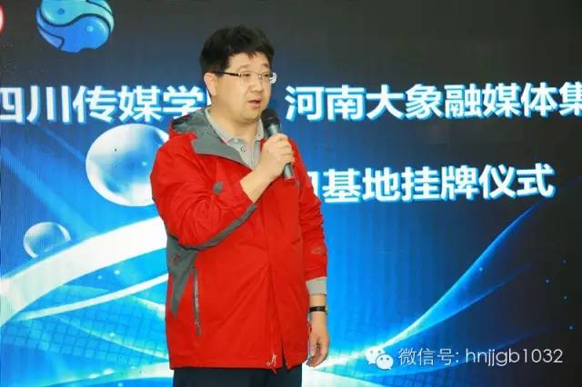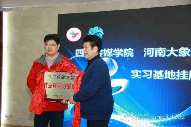 四川傳媒學院副院長王雷、河南大象融媒體集團副總裁李強為“四川傳媒學院·大象融媒就業(yè)實習基地”掛牌。