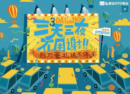 三天時間,鎖定關注收聽“私家車999”,以上時段每隔30分鐘,我們都會送出6份各價值3000-5000元的大禮包,實打實的獎品源源不斷的送給各位親愛的天使。