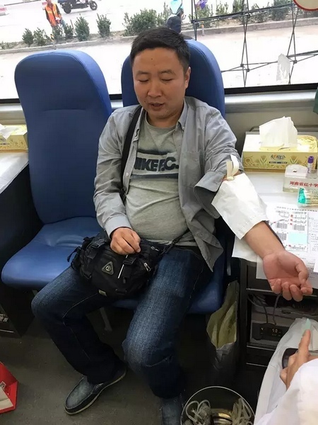 在附近的外賣小哥聽到有獻血活動,送完外賣后立刻趕來,獻完血后又繼續(xù)工作去了。