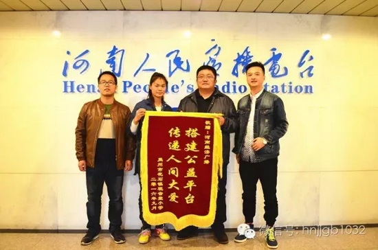 河南經(jīng)濟廣播《讀書吧!少年》第二季在9月3日走進(jìn)了禹州市花石鎮(zhèn)觀音堂小學(xué),時隔一月有余,禹州市花石鎮(zhèn)觀音堂小學(xué)的校長王變變女士也對我們的工作表示由衷的敬意,為了表達(dá)自己的感恩之心,不惜冒雨前來送上滿含感激之情的錦旗。