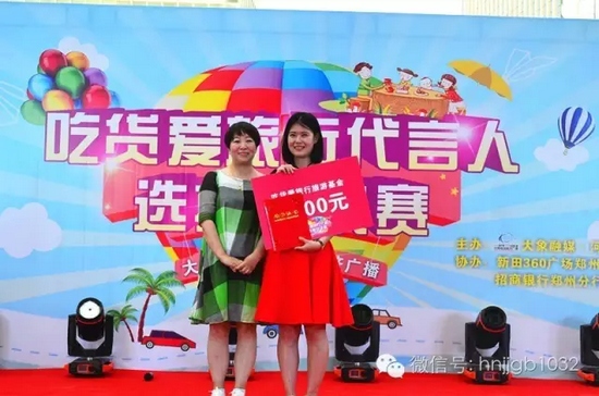 獲得第一名的選手成功簽約《吃貨愛(ài)旅行》成為代言人,由河南經(jīng)濟(jì)廣播副總監(jiān)欣悅女士上臺(tái)進(jìn)行了頒獎(jiǎng)儀式。