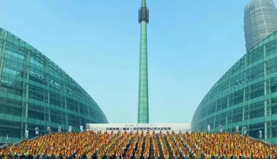 志愿者按照吉尼斯認(rèn)證官的要求,