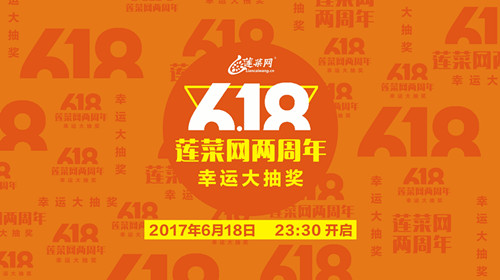 蓮菜網(wǎng)兩周年幸運(yùn)大抽獎(jiǎng),將于今晚23:30開(kāi)始,敬請(qǐng)關(guān)注。