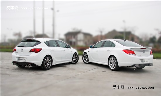 Irmscher定制版只采用純白色車身,外觀更換更具視覺沖擊力的包圍套件,車尾雙邊四出排氣管令人印象深刻,以上這些都是這兩款定制版車型的明顯特點。另外英朗XT的多輻式輪轂也非常漂亮。