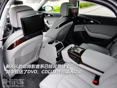 后排是全車的重點:后排空間無疑是奧迪A6L的重點,50TFSI的前后排座椅都安裝了舒適性頭枕,其中后排座椅更是擁有同級別中獨一無二的按摩功能,提供了3種不同的氣壓按摩模式。獨立于前排座椅頭枕的后排娛樂系統(tǒng)也可像前排一樣播放電視和DVD影像,功能上與A8L車型相同,但也僅限于頂配車型。