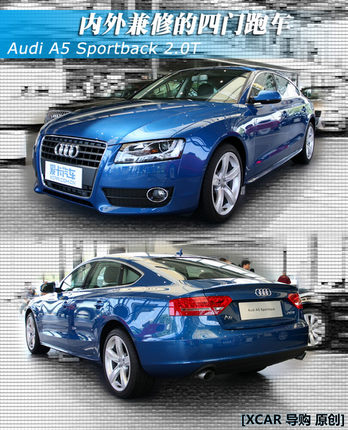 5月23日,奧迪A5/S5全系共10款車(chē)型正式在全國(guó)上市,其中包括全新的A5/S5 Cabriolet敞篷轎跑車(chē)、A5/S5 Sportback五門(mén)轎跑車(chē)和全新的A5/S5 Coupe雙門(mén)轎跑車(chē),以及充滿動(dòng)感個(gè)性的A5 Coupe 2.0T風(fēng)尚版。今天我們?cè)?S店拍攝到的這輛藍(lán)色的A5為售價(jià)52.8萬(wàn)的Sportback 2.0T車(chē)型。