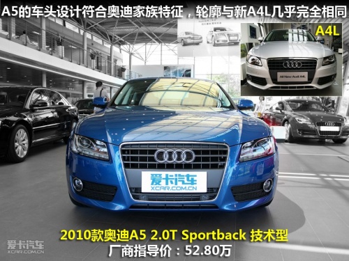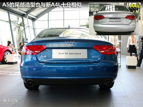 如果不仔細(xì)看,你將很難把它和新A4L區(qū)分開(kāi),它的車(chē)頭部造型幾乎與A4L完全相同,車(chē)身尾部也僅僅是尾燈與A4L略微不同。如果不是尾部的A5字樣標(biāo)識(shí),很多人都可能會(huì)“看花眼”。事實(shí)上,奧迪A5 Sportback的車(chē)身尺寸也與歐版奧迪A4較為接近。