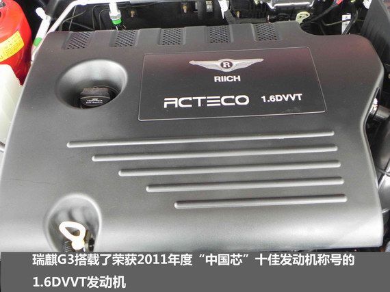 作為瑞麒品牌的第一款緊湊型汽車,瑞麒G3自去年12月上市以來,將瑞麒G系的核心理念——“秉持嚴謹的造車理念,堅持對技術的苛求,打造高性能品質座駕”完美演繹,是一款集“高效動力及五項全能為一體的 “高效全能新家轎”。