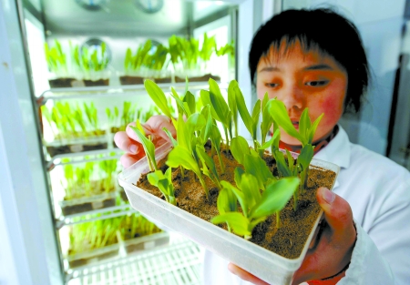 3月27日,??h種子站工作人員在查看光照培養(yǎng)箱里培養(yǎng)的種苗。近年來,浚縣實(shí)施“科技興糧”戰(zhàn)略,糧食生產(chǎn)連年獲得豐收。目前,??h100多萬畝小麥長(zhǎng)勢(shì)良好。 新華社發(fā)