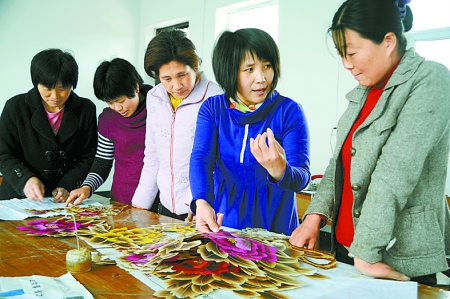 4月16日,汝南縣明振麥草畫工藝品廠的工人們正在一起交流制作技術(shù)。該企業(yè)的麥草畫暢銷日、韓等60多個(gè)國家,帶動(dòng)當(dāng)?shù)?00多名婦女就業(yè)。