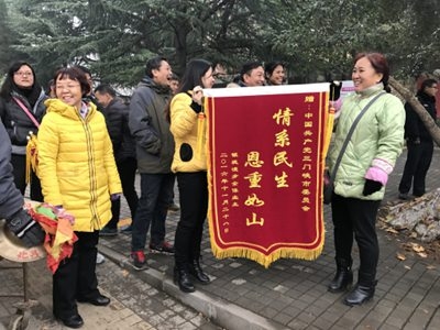 11月29日,三門(mén)峽市銀堤漫步小區(qū)數(shù)十位業(yè)主敲鑼打鼓冒雨將兩面寫(xiě)有“情系民生 恩重如山”、“心系百姓 為民排憂”的錦旗送到三門(mén)峽市委和市政府,感謝新的領(lǐng)導(dǎo)班子為他們千余戶(hù)業(yè)主解決了存在五年的住房難問(wèn)題。