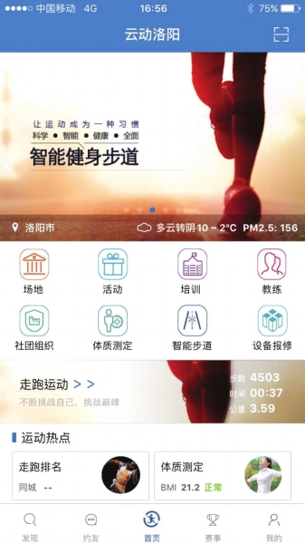 不用出門,就能查看運(yùn)動場館是否有空閑;線上預(yù)約,免費(fèi)接受線下專業(yè)體質(zhì)測定;掃二維碼,就能將損壞的體育設(shè)施報修……近日,由洛陽市體育局主導(dǎo)設(shè)計、中國移動洛陽分公司集成開發(fā)的智慧體育云平臺上線,上述這些功能,市民都可以通過智慧體育云平臺手機(jī)軟件“云動洛陽”和微信公眾號“云動洛陽”輕松實(shí)現(xiàn)。