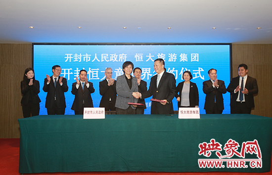 當(dāng)日下午,在河南省委常委、常務(wù)副省長翁杰明和恒大集團董事局主席許家印等嘉賓見證下,開封市長侯紅和恒大集團常務(wù)副總裁兼恒大旅游集團董事長肖恩代表雙方在合作協(xié)議書上簽字。