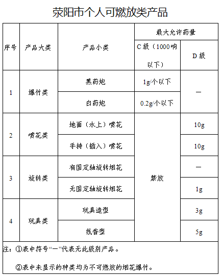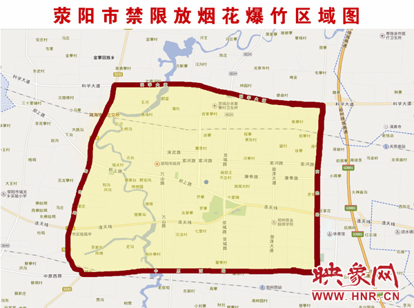 自2017年1月20日起,在滎陽市行政管理區(qū)域內(nèi)實行法定區(qū)域、劃定區(qū)域(中心建成區(qū))全面禁放,其他區(qū)域限品種燃放煙花爆竹。