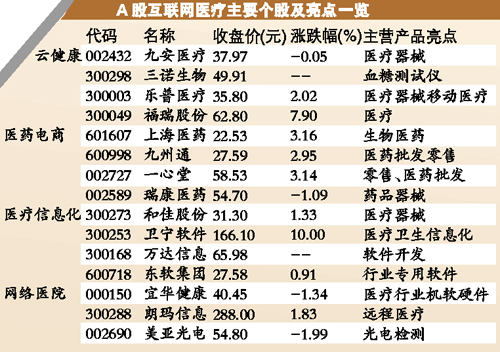 有機(jī)構(gòu)人士表示,下一個金礦可能是互聯(lián)網(wǎng)同醫(yī)院、醫(yī)藥、藥房等醫(yī)療領(lǐng)域的聯(lián)姻。記者統(tǒng)計(jì)發(fā)現(xiàn),天堂硅谷、紅杉資本、云峰基金、力合創(chuàng)投等一大批私募和PE們都已提前布局互聯(lián)網(wǎng)醫(yī)療。在A股市場上,部分互聯(lián)網(wǎng)醫(yī)療潛力股投資者可適當(dāng)關(guān)注。