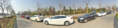 不一會(huì)兒,校門(mén)口聚集的車(chē)輛越來(lái)越多,幾乎把馬路堵成了“停車(chē)場(chǎng)”。鄭大校門(mén)口往西的馬路兩側(cè)也早已停滿(mǎn)了車(chē),粗略統(tǒng)計(jì)至少有上百輛,車(chē)輛排成的長(zhǎng)隊(duì)甚至一眼望不到頭。