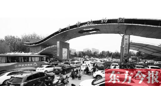 到了西門(mén),記者搞清楚堵車的原因,竟是動(dòng)物園停車位緊張。一輛接一輛的車在門(mén)口排隊(duì)等著交費(fèi)進(jìn)入,車隊(duì)一直排到了花園路上。