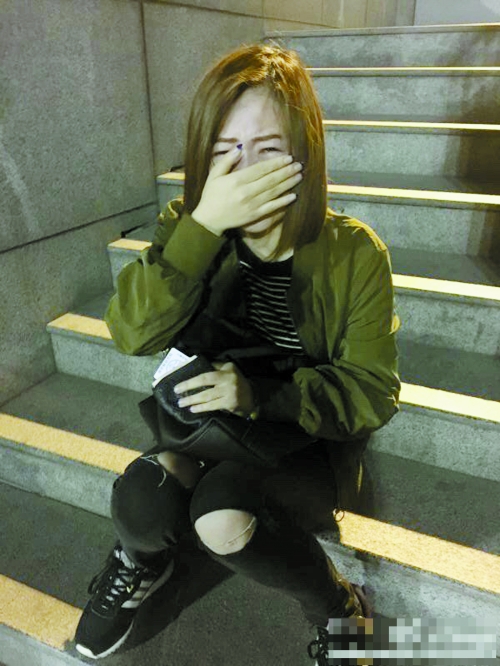在微博配圖中,撿到錢包的環(huán)衛(wèi)工穿著“站區(qū)環(huán)衛(wèi)”黃色馬甲,手中提著掃帚和一個裝著塑料瓶的塑料袋,另一張圖則是網(wǎng)友“蘇粉mpp”坐在西廣場臺階上捂臉哭泣的照片。