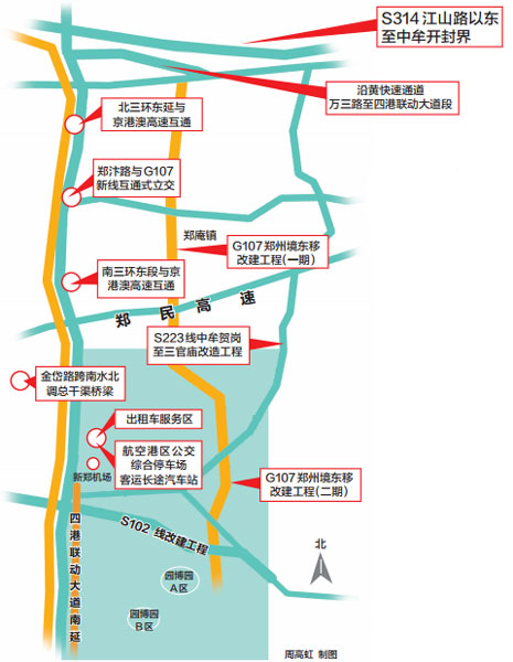 鄭州市交建投公司項(xiàng)目代表王占軍說(shuō),G107 線鄭州境東移改建(二期)工程路線從鄭州航空港經(jīng)濟(jì)綜合試驗(yàn)區(qū)東部經(jīng)過(guò)。項(xiàng)目建成后,將對(duì)提升整個(gè)鄭州東部,乃至全省南北路網(wǎng)的交通通行能力具有重要意義,因?yàn)?07新線未來(lái)往北可在中牟官渡穿越黃河,南邊則一直可以延伸到信陽(yáng)。