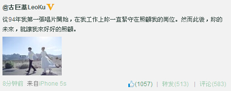 古巨基微博公布與助理女友結(jié)婚照
