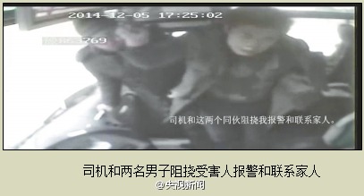 12月5日,河南南陽通往社旗縣的一輛大巴上,22歲女孩劉樂遭一50歲左右的男子猥褻。女孩反抗并向司機(jī)求救,要求其報警,司機(jī)無動于衷,滿車乘客也無人幫忙。隨后女孩被2名男子拖下車毆打。目前嫌犯已被拘留,司機(jī)被停職。