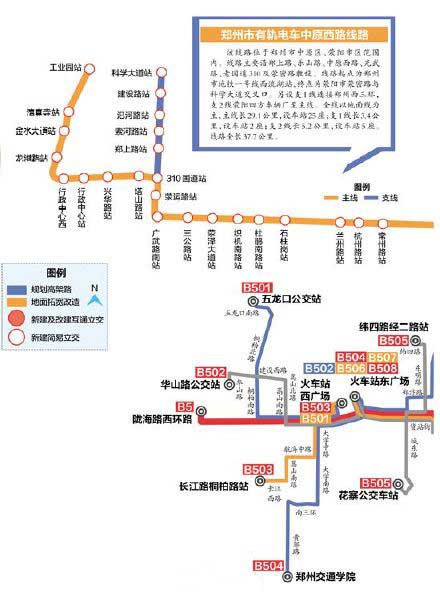 鄭州市有軌電車中原西路線路起點(diǎn)為地鐵一號線西流湖站,終點(diǎn)為滎密路與科學(xué)大道交叉口。另設(shè)支1線連接鄭州西三環(huán),支2線滎陽四方車輛廠至主線。主要沿鄭上路、樂山路、中原西路、光武路、老國道310及滎密路敷設(shè)。