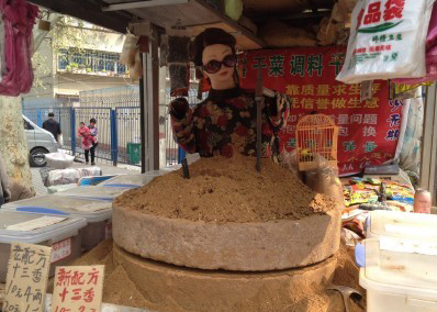 今天上午,在前進(jìn)路伊河路口,一輛賣調(diào)味品的小貨車上,一身穿紅旗袍帶墨鏡的“妙齡女郎”動作嫻熟地推動石磨加工十三香。老板唐師傅笑著說自從裝上美女機(jī)器人幫忙推磨后,生意好了不少。