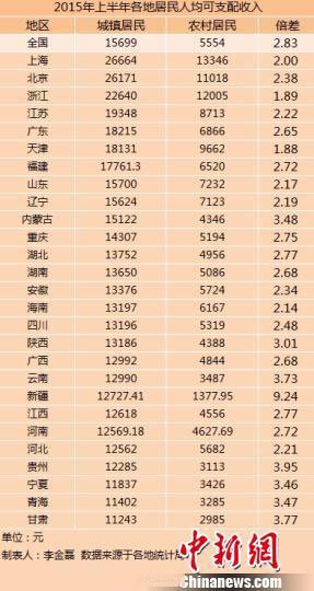 6、27省份上半年城鄉(xiāng)居民收入出爐:上海最高 甘肅墊底