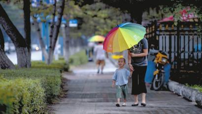 昨日下午3點(diǎn)左右,長(zhǎng)春上空開始下起小雨。南湖大路上一位母親剛剛接到幼兒園放學(xué)的孩子 新文化記者 郭亮 攝
