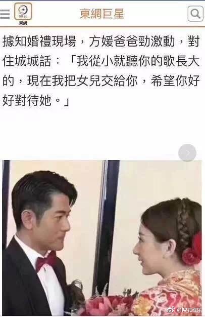 【方媛爸爸叮囑#郭富城#:我從小聽你歌長大】據(jù)港媒報(bào)道,#郭富城方媛婚宴#現(xiàn)場,方媛爸爸很激動地對郭富城說:“我從小就聽你的歌長大的,現(xiàn)在我把女兒交給你,希望你好好對待她。”