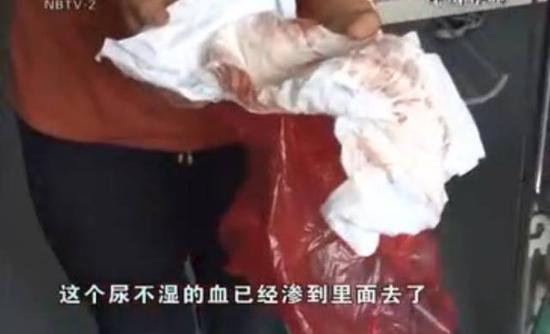 有個(gè)人我們是認(rèn)識(shí)的,他也是在菜場(chǎng)里做生意的,有的時(shí)候會(huì)抱女兒玩。這回也是抱女兒出去玩,差不多40分鐘才回來(lái)。當(dāng)時(shí)寶寶手上拿著糖但是目光很呆滯,我給她換衣服,碰到她下體,她有點(diǎn)不高興,尿不濕的血已經(jīng)滲到里面去了……
