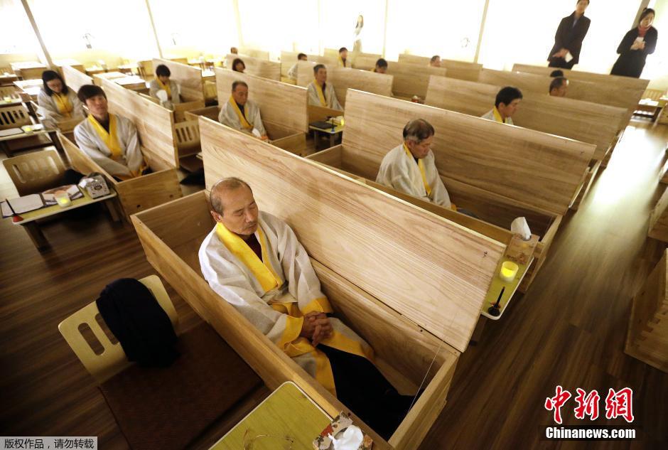 韓國(guó)社會(huì)近來(lái)興起一股“模擬葬禮”風(fēng)潮,以這種另類的方式幫助人們減壓、調(diào)整人生航向。據(jù)報(bào)道稱,韓國(guó)的自殺率不斷上漲,每天都有多達(dá)40人自殺。專家認(rèn)為韓國(guó)過(guò)于激烈的競(jìng)爭(zhēng)環(huán)境是導(dǎo)致人們抑郁、自殺的罪魁禍?zhǔn)住J谞柕囊患抑委熤行姆Q,他們推出的“死亡體驗(yàn)”療法是消除自殺危機(jī)的良方。